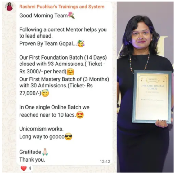 Meanwhile, our unicorn coaches are using this new, simpler, faster system “Whatsapp delivered courses” to scale to ₹10L/month… ₹1Cr/year… and even ₹1Cr/month.