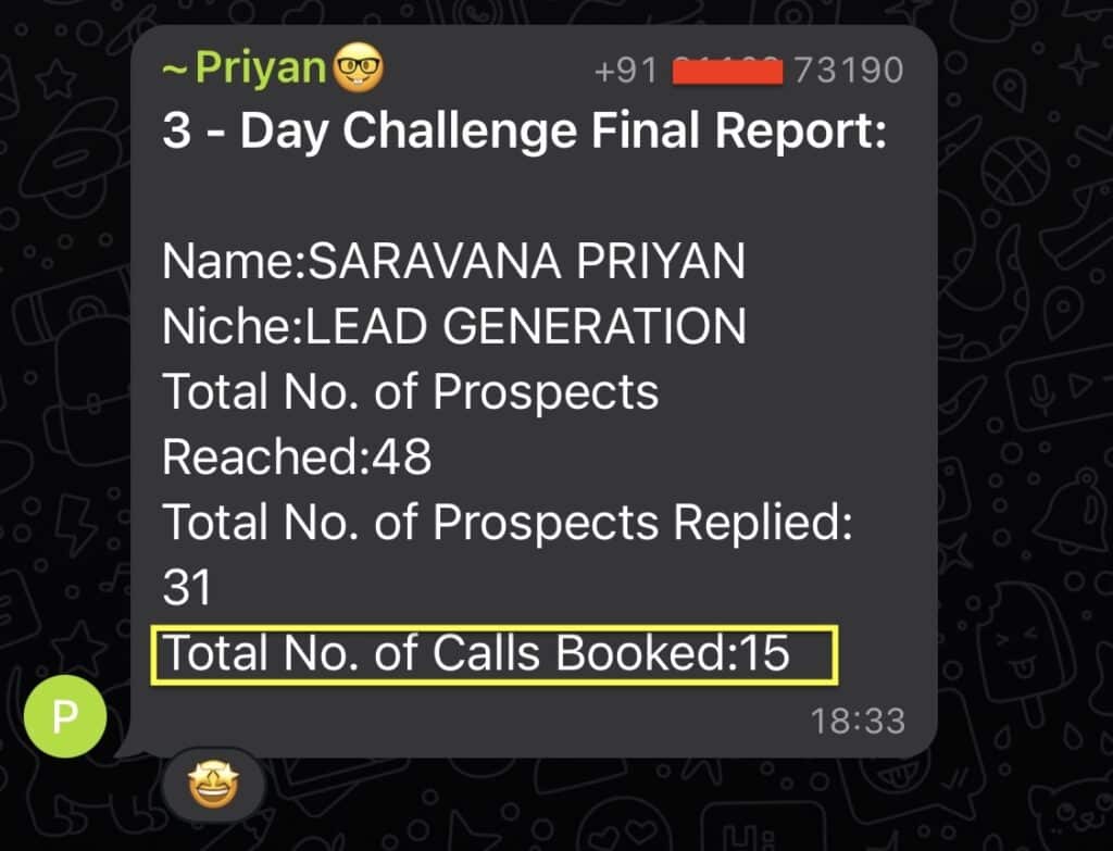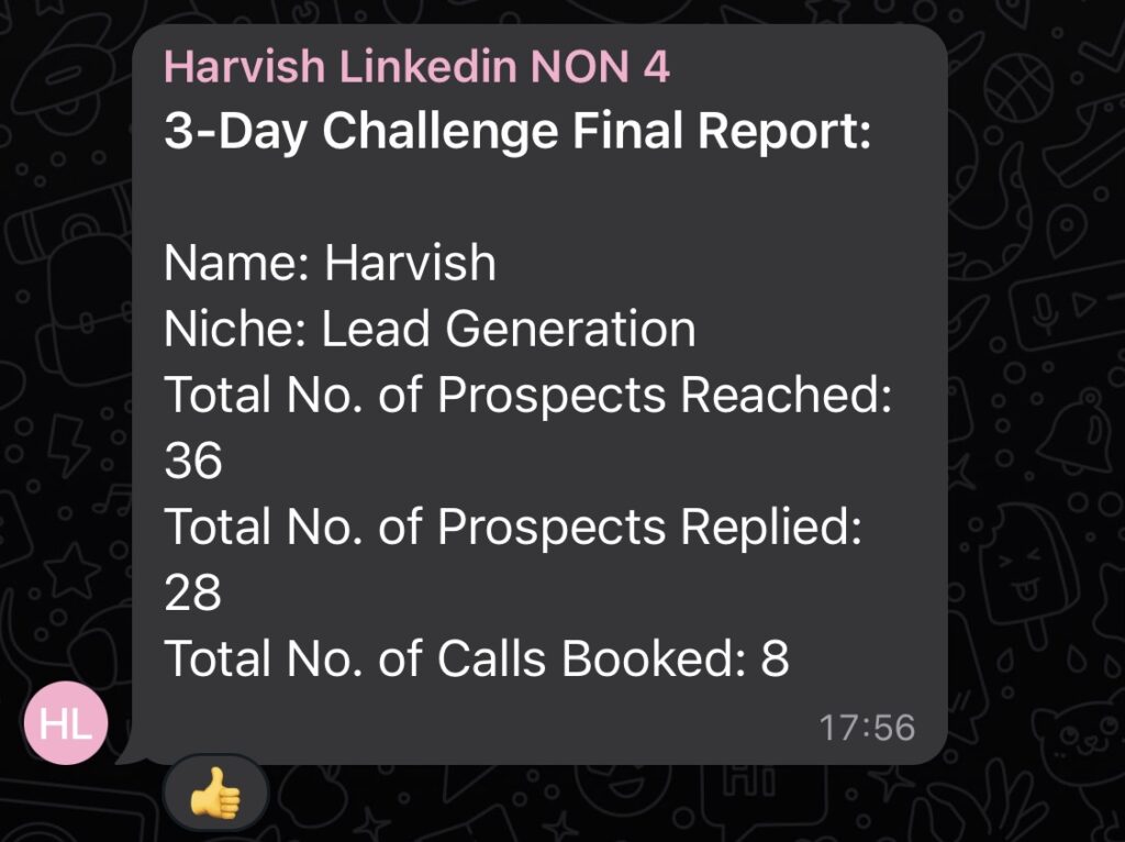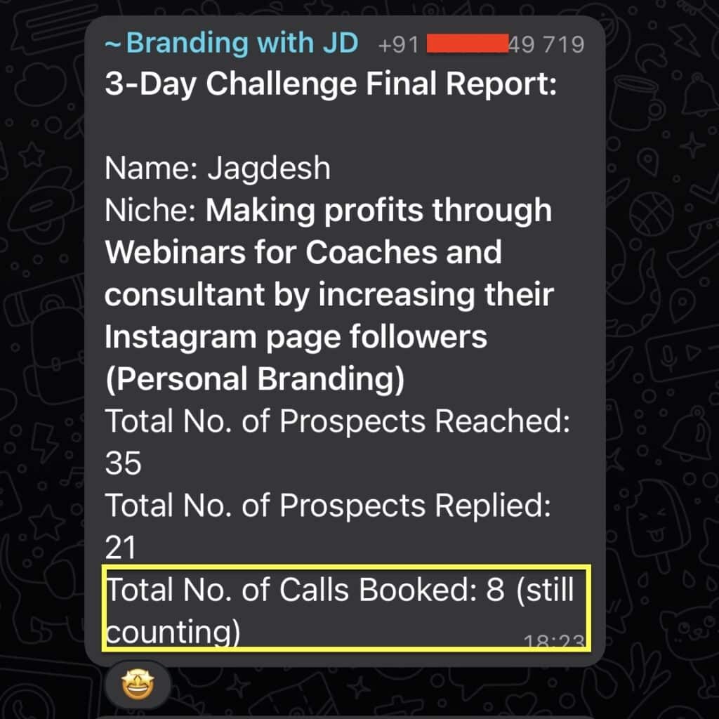 I have booked 3 calls within just 4 outreach & truly I can’t believe this, I don’t know what to speak with them now (lol)…”