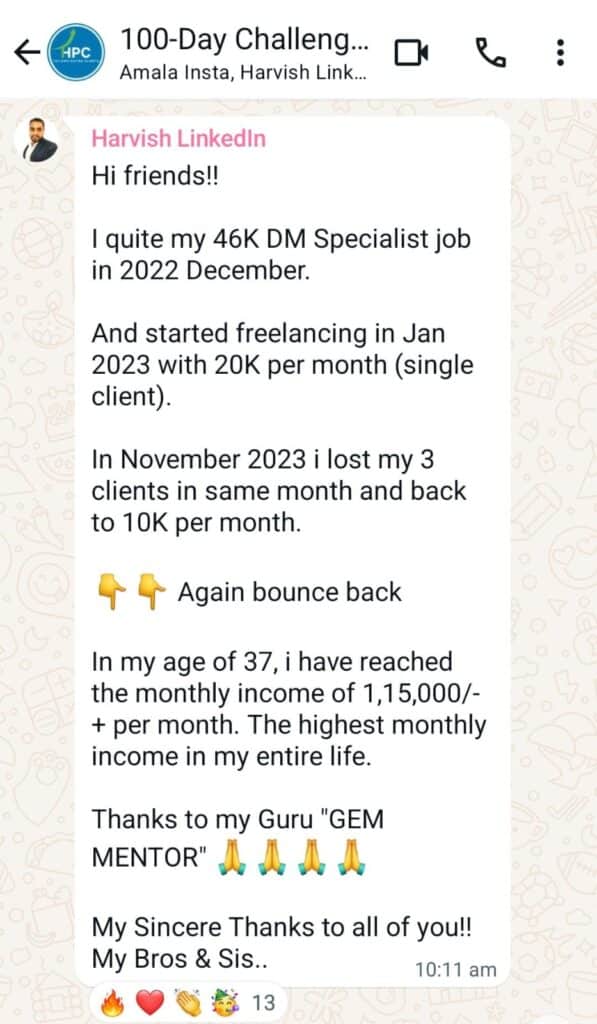 “I have closed ₹75,000/month client & the client is ready to double it once I show them the results, I am so happy, thank you…”