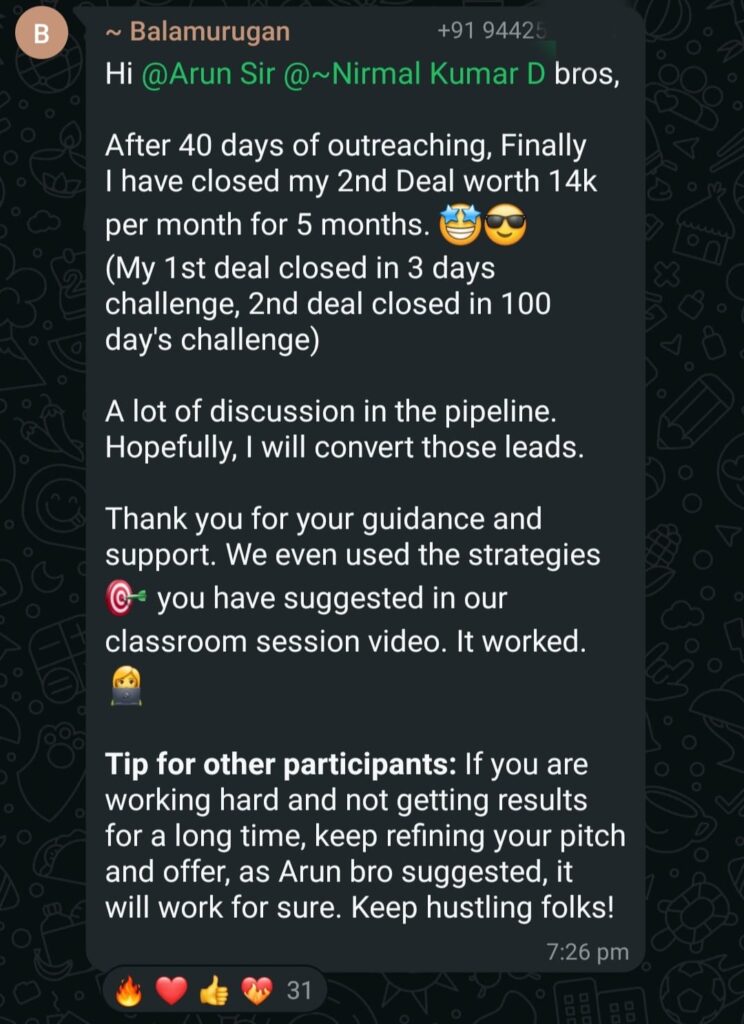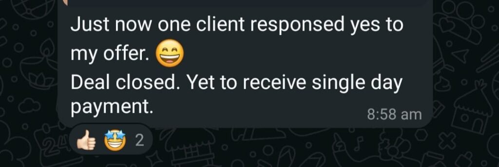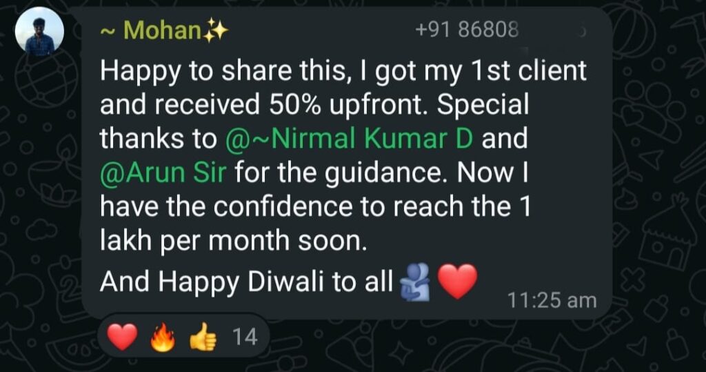 “I struggled for years, unsure if freelancing was right for me. But the Challenge was exactly what I needed. In just 9 days, I closed 8 deals and am now making ₹2,00,000/month—something I never thought possible.”
